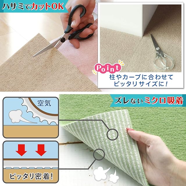 床にピタッと密着して、ずれたり横すべりしないフロアマットです。