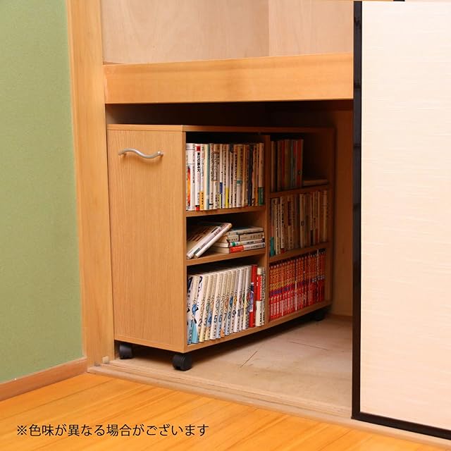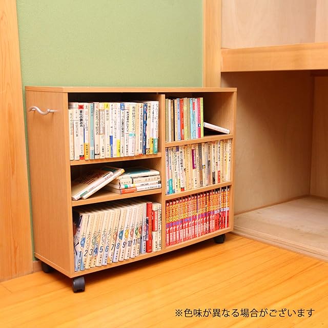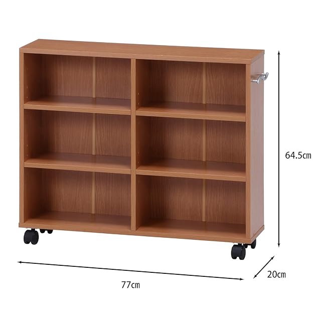 不二貿易 本棚 リビング収納 隙間収納 幅20×奥行77×高さ64.5㎝ ビーチ 可動棚 キャスター付き 取っ手付き 組立商品 79114