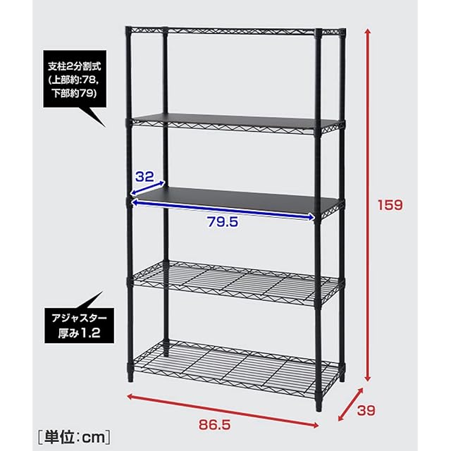 材質:ポール・棚=スチール(エポキシ樹脂塗装)、アジャスター=ナイロン、テーパースリーブ=ABS、ウッドボード=PVC化粧繊維板