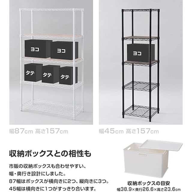 山善(YAMAZEN) ラック スチールラック本体 棚 5段 ハイタイプ 収納棚 シェルフ ホワイト 86.5×39×159cm 木製棚板2枚セット 耐荷重250kg ICM-15875J(WH) WB