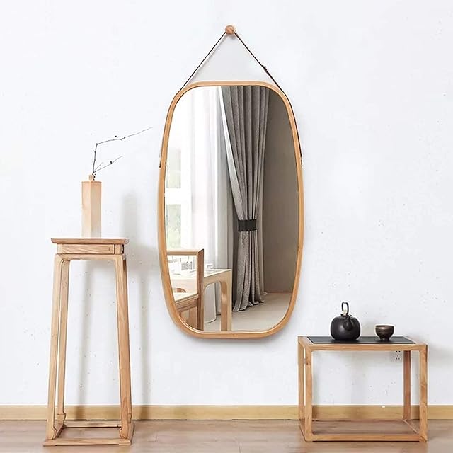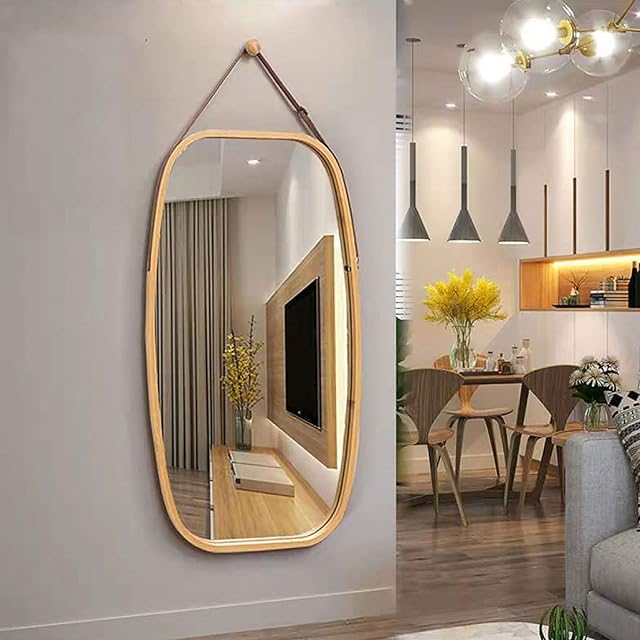 【多用途ウォールミラー】自分のニーズに応じて、ロープの長さを調整できます。メイクする時の壁掛けミラーや、出掛ける前に衣装チェックの全身鏡などいろんな用途があります。