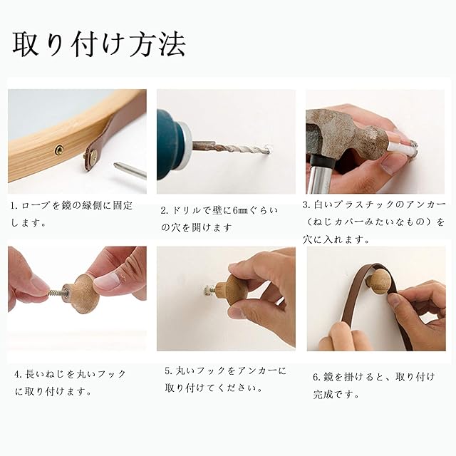 【ロープ調節可能】自分のニーズに応じて、ロープの長さを調整できます。メイクする時の壁掛けミラーや、出掛ける前に衣装チェックの全身鏡などいろんな用途があります。