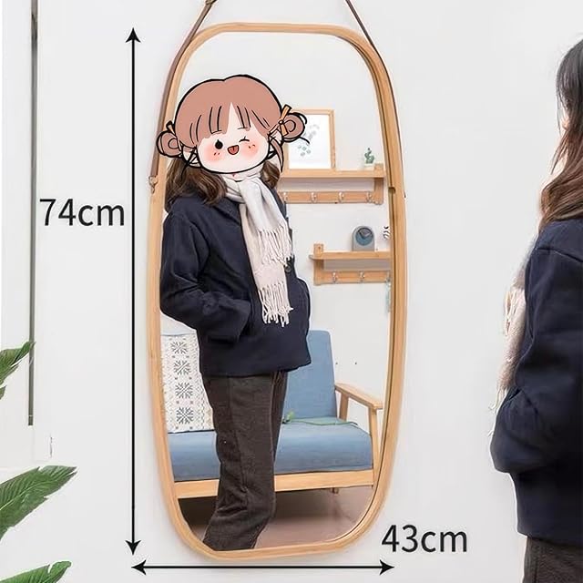 SoBuy 姿見 鏡 全身鏡 壁掛け鏡 おしゃれ 幅43×高さ77cm 竹製 北欧 丸角 飛散防止 高さ調節可能 姿見鏡 全身ミラー 鏡壁掛け ウォールミラー 玄関かがみ(BZR12-N/ナチュラル)