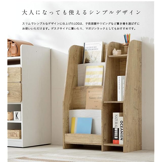 スリムでシンプルなデザインのLOG。子供部屋やリビングなど置き場を選ばずお使いいただけます。安心な角丸加工でお子様の絵本棚としても、マガジンラックとしてもおすすめです。