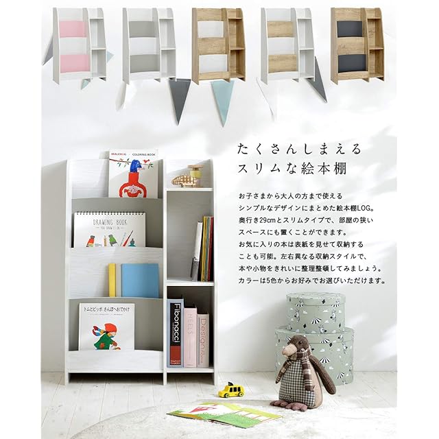 子どもから大人まで使えるシンプルなデザインの絵本棚LOG。奥行き29cmのスリムサイズだからお部屋の狭いスペースにも置くことができます。