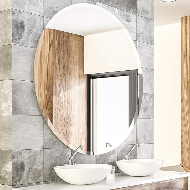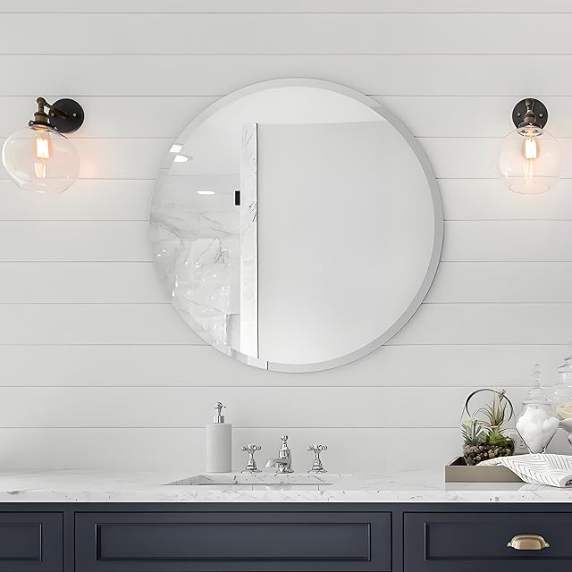 フレームレス設計:ラウンドミラーは、1 インチの面取りされたエッジがあり、直径21.7 インチのフレームはありません。研磨されたエッジは、カットを避けるために滑らかで平坦です