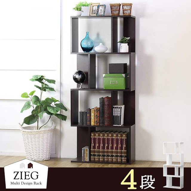 岩附 オープンラック 4段 幅60cm 本棚 棚 木製 スリム ラック 収納 オープンシェルフ ブラウン IW-1405BR