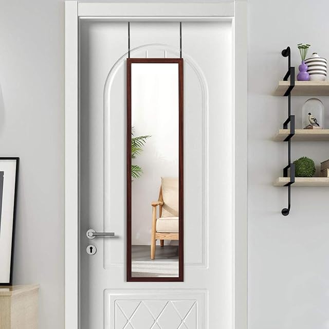 Beautimira ドア掛けミラー 姿見 壁掛けミラー エコPSフレーム 軽量 高さ調節式 おしゃれ 118cm*30cm ブラウン