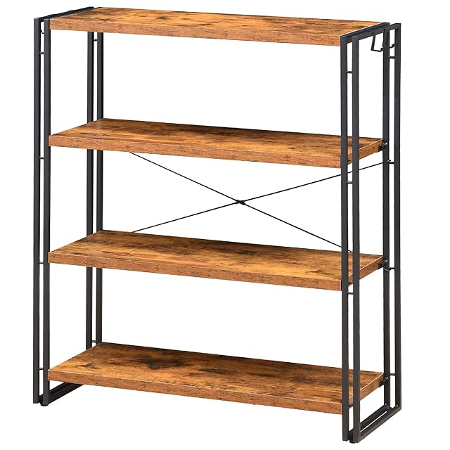HCHQHS ラック オープンシェルフ 4段 木製 収納 本棚 オープンラック キッチンラック リビングラック 棚 おしゃれ 北欧 木目調 組立簡単 ディスプレイラック スチールラック 幅80cm