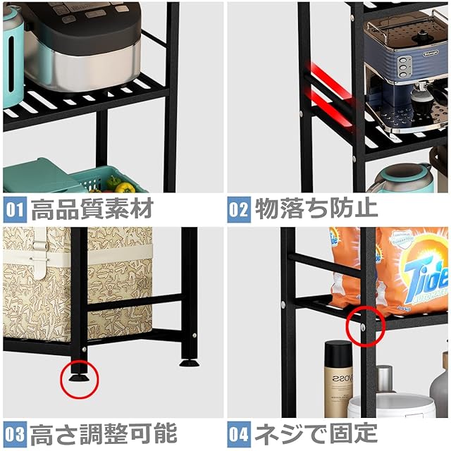 Fainyearn スチールラック レンジ台ラック キッチンラック 収納ラック 本棚 キッチン 整理棚 シェルフ棚 メタル製 メタルラック 4段 幅43.5cm×奥行30cm×高さ109.5cm