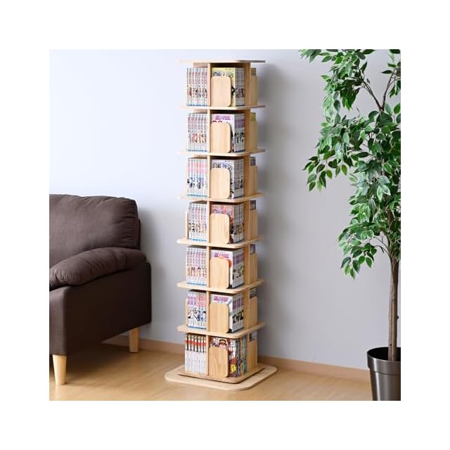 山善(YAMAZEN) 本棚 回転式本棚 7段 角型 コミックラック 360度回転 大容量 天然木 漫画 ラック 棚 幅45cm×奥行45cm×高さ152cm ブックシェルフ 組立品 ナチュラル TKCS-7(NA)