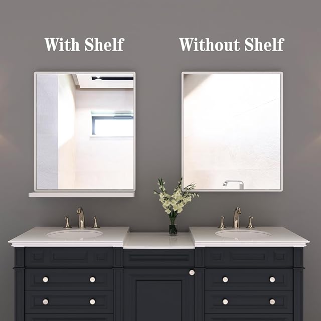 ANYHI 壁掛け鏡 トレイ付き長方形ミラー 洗面所 ミラー 壁掛け 幅51×高さ62cm 浴室 洗面台用
