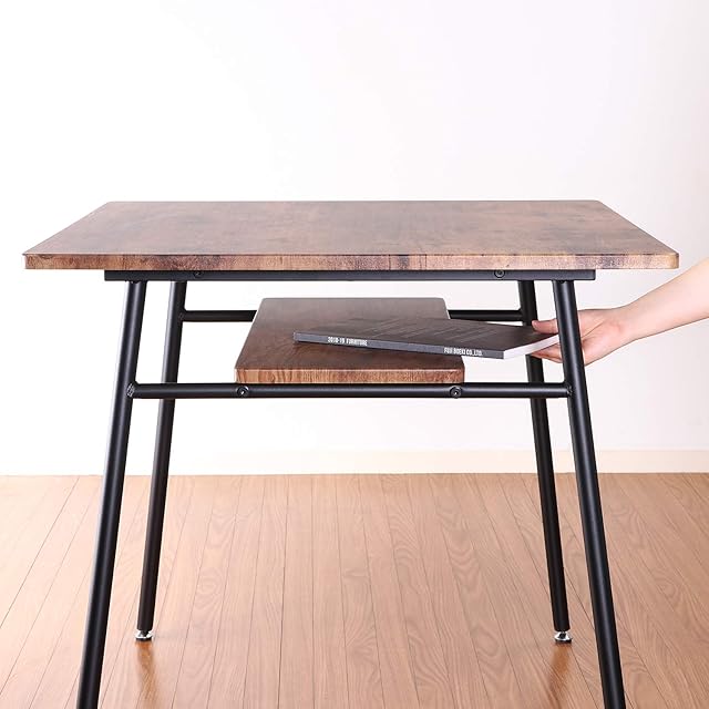 不二貿易 ダイニングテーブル テーブル 1人用 2人用 一人暮らし 単身 ヴィンテージ風 木目調 収納棚付き アジャスター付き 角が丸い 幅75×奥行75×高さ70cm ブラウン 単品 ナビア 14659