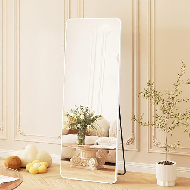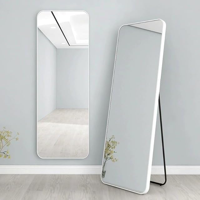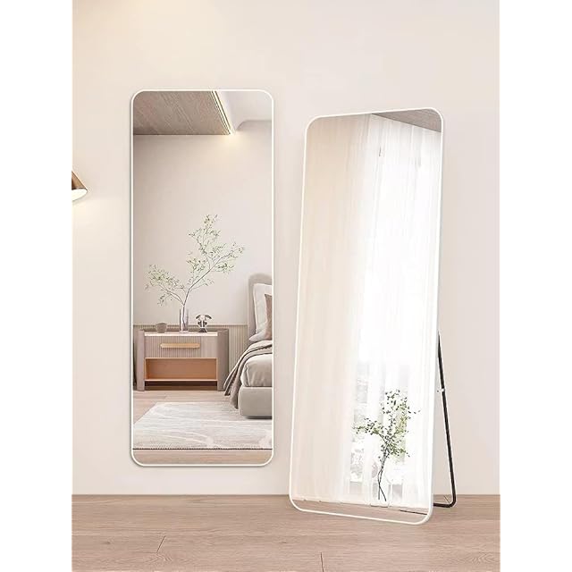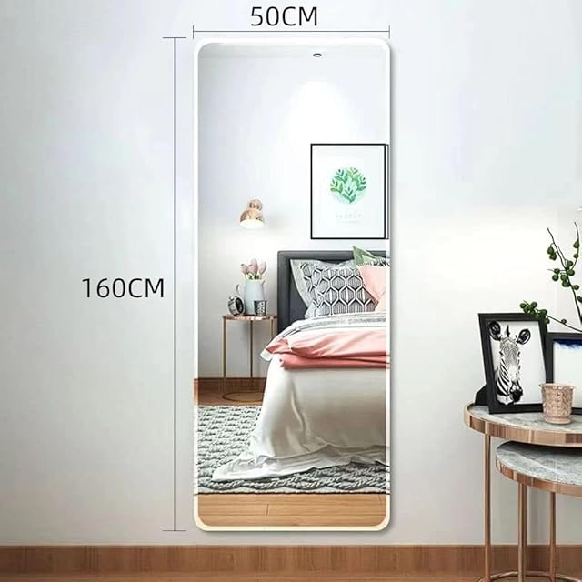 北欧 全身鏡 157CM * 47CM 角丸デザイン アルミフレーム 全身ミラー 姿見鏡 かがみ スタンドミラー 壁掛け可 大型 鏡 大きい おしゃれ 玄関 二サイズ (白い 47X157CM)
