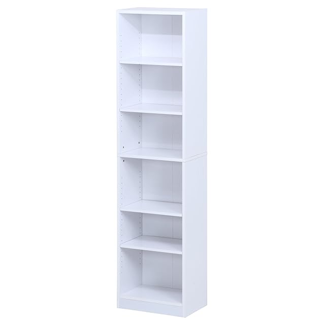 不二貿易 本棚 多目的棚 6段 1列 幅45×奥行29×高さ180cm ホワイト ブックシェルフ マガジンラック 可動棚 97546