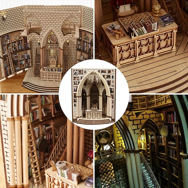 大人向けLEDブックヌークキット - 装飾ブックエンドスタンド - 3D木製パズル 大人用 ブックヌーク本棚 インサート 部屋 装飾 ギフトクラフト ティーン 女の子 男の子 女性 男性 (オフィス)