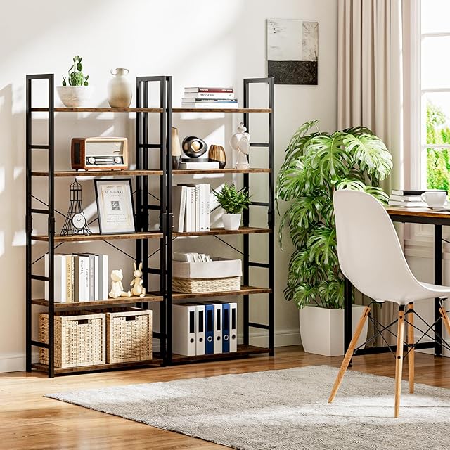 kukeimaru 本棚、5段本棚、オフィス棚収納棚、幅58.6×深さ23.5×高さ144cm,オープンラック、リビングルームに適用するラックラック, レトロ