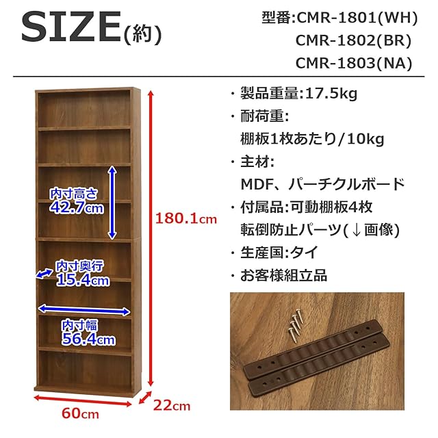 商品サイズ(約):幅60x奥行22x高さ180.1cm