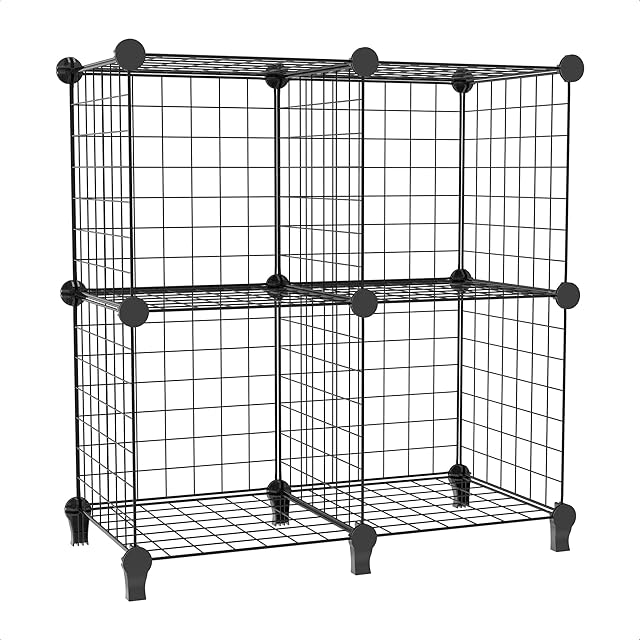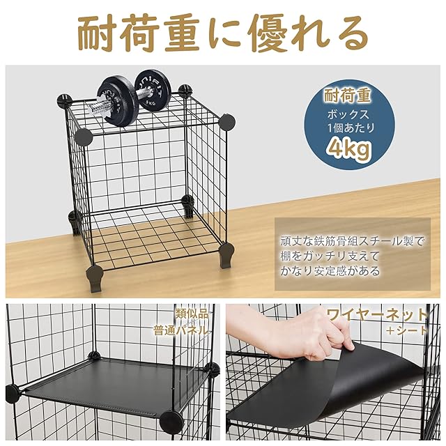 【大容量高硬度&組立簡単】 チチロバ(TITIROBA) 収納棚 整理棚 本棚 ワイヤー 収納ラック 大容量 おもちゃ/ぬいぐるみ/靴収納 見せる収納 簡単組立 ワードローブ ブラック 4ボックス