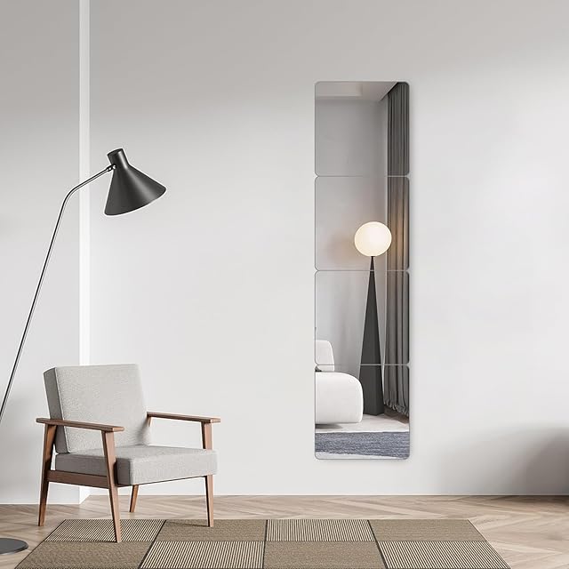 【いろんな使い方】製品は30*30cmで4枚セット、必要に応じて使い方がいろいろ。縦に組み合わせば全身鏡で姿見として、正方形で洗面所に、部屋の多い家でしたら、一枚ずつ使用するのもお勧めです。