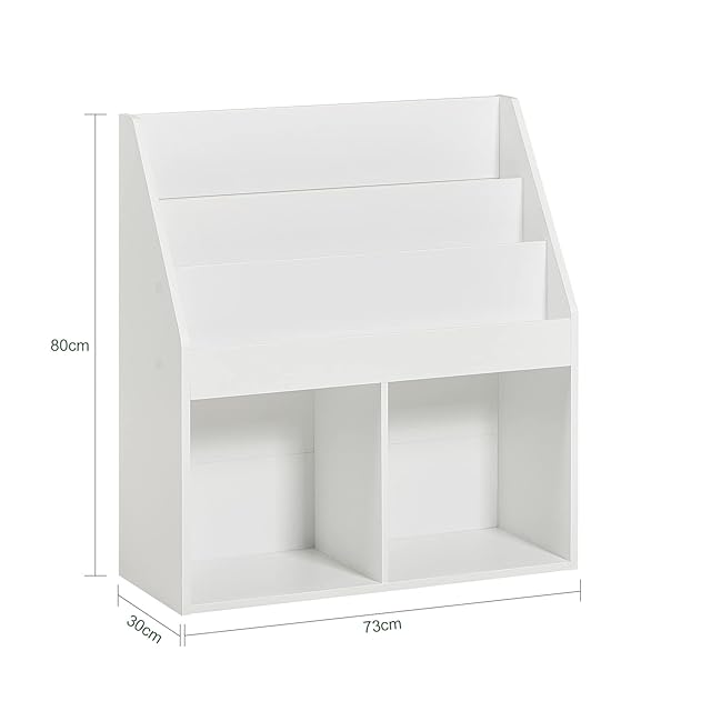 SoBuy 絵本棚 おもちゃ箱 絵本ラック 子供用本棚 おもちゃ 収納 大容量【収納カート付き/マンガ 雑誌収納、かわいい/キッズ/おしゃれ】 子供用シェルフ 子ども家具(KMB01-W)