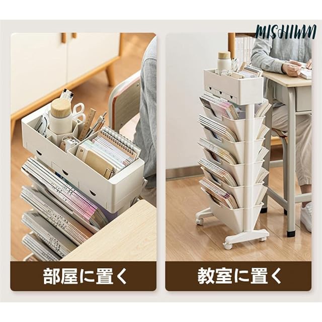 [MISHIWVN] 本棚 書類棚 収納棚 ブックスタンド 大容量 多機能 スリム おしゃれ 省スペース 資料整理 組立式 キャスター付き 漫画 雑誌 教科書 収納 学生用 オフィス/学校用
