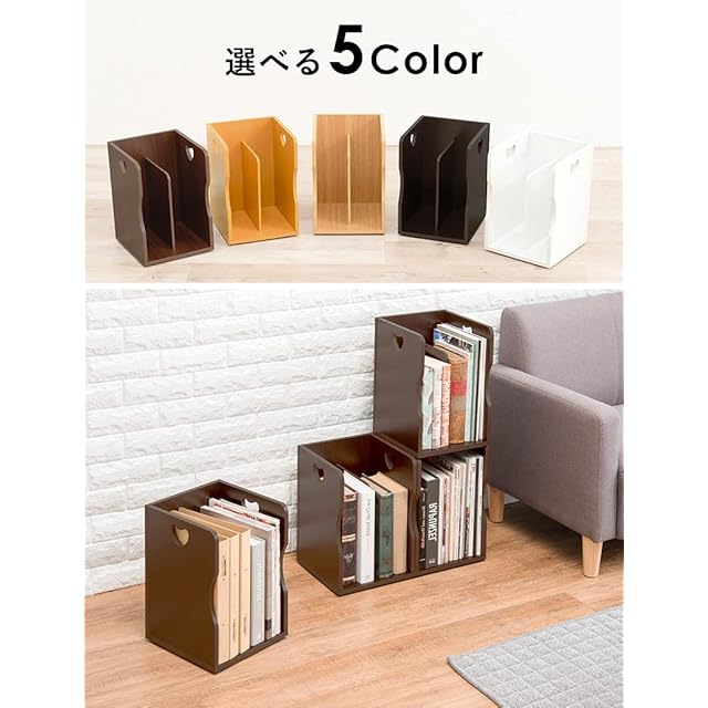 【重ねても使えるスタッキング式】:本や雑誌などを収納できる木目調がおしゃれなファイルラック(2個セット)。スタッキング可能な設計なので、デッドスペースを有効活用し収納できます。