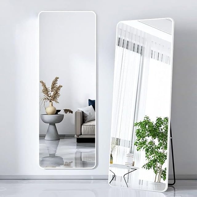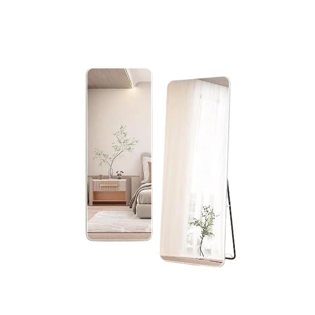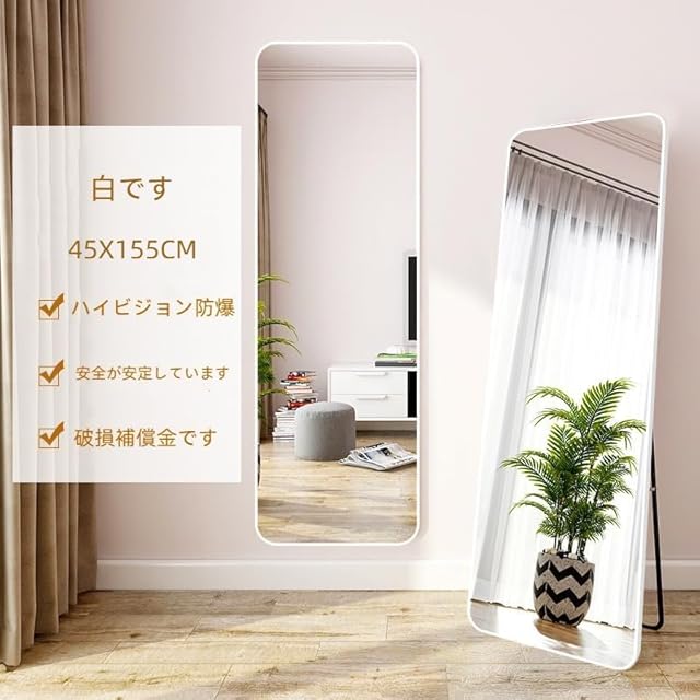 北欧 全身鏡 155CM * 45CM 角丸デザイン アルミフレーム 全身ミラー 姿見鏡 かがみ スタンドミラー 壁掛け可 大型 鏡 大きい おしゃれ 玄関 二サイズ (白です 45CM*155CM)