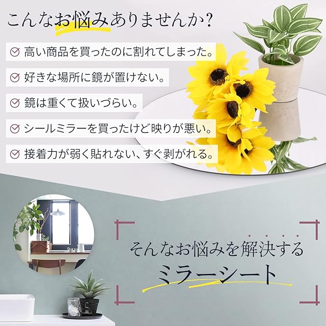 takano商店 円形ミラー 直径50㎝ 特大サイズ【ぴたっと貼れる安全ミラー】割れない鏡 貼る鏡 軽量 姿見鏡 浴室 鏡 壁掛け