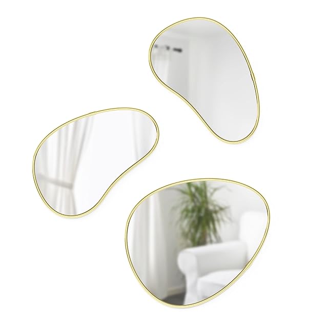 umbra ミラー 壁掛け鏡 ぺブル ウォールミラー インテリア ブラス 3 個セット HUBBA 21018566104 W25×D1×H31cm