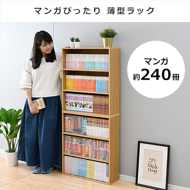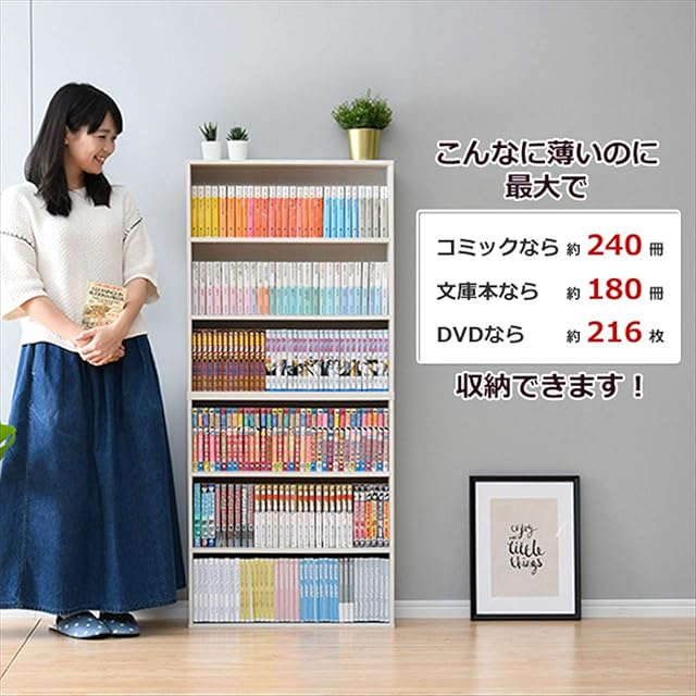 【スリムだけど大容量】薄型の棚ですが、単行本は最大約240冊、文庫本なら約180冊収納できます。