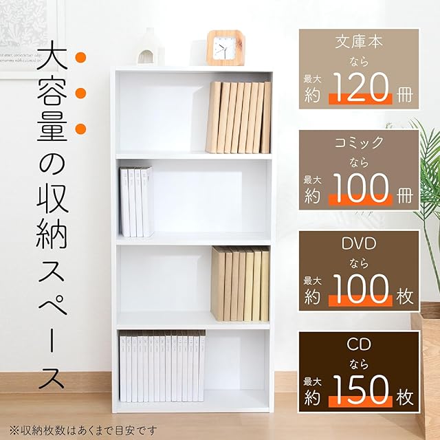 不二貿易 本棚 コミック収納ラック 4段 幅41.8×奥行18.5×高さ89cm ホワイト CD&DVD収納 固定棚 組立商品 81397