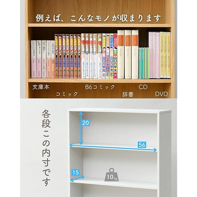 【スリムだけど大容量】コミック本なら約240冊とたくさん収納できるので、お部屋をすっきり片づけられるラックです。収納目安(最大):コミック240冊、DVD216枚、文庫本180冊