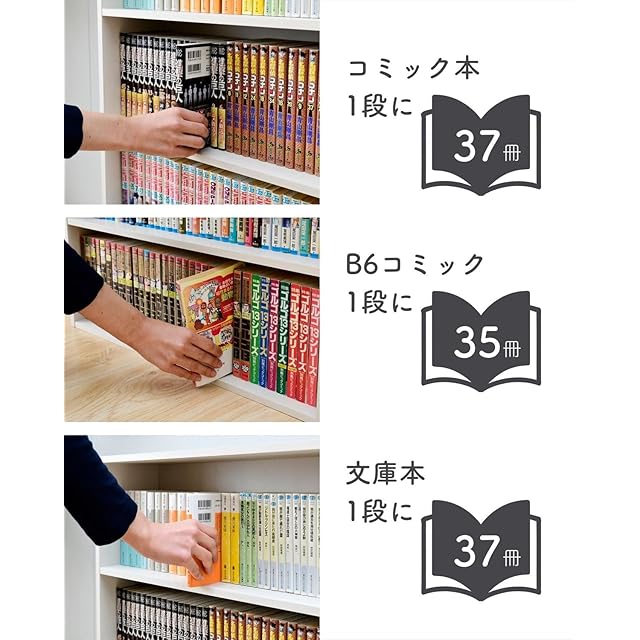 【スリムだけど大容量】コミック本なら約240冊とたくさん収納できるので、お部屋をすっきり片づけられるラックです。収納目安(最大):コミック240冊、DVD216枚、文庫本180冊