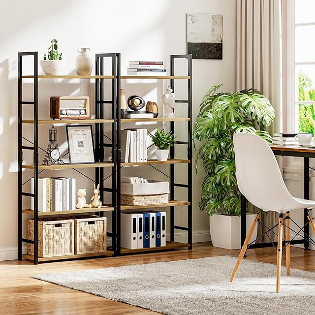 kukeimaru 本棚、5段本棚、オフィス棚収納棚、幅58.6×深さ23.5×高さ144cm,オープンラック、リビングルーム、寢室、ホームオフィスに適用するラックラック、原木色