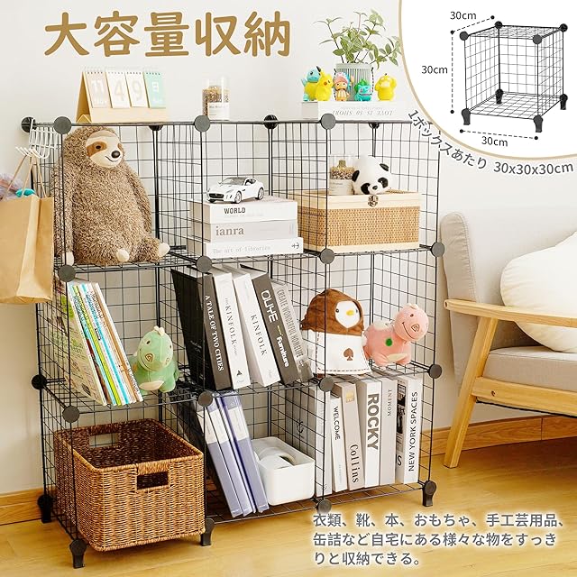 【大容量高硬度&組立簡単】 チチロバ(Titiroba) (TITIROBA) 収納棚 整理棚 本棚 ワイヤー 収納ラック 大容量 おもちゃ/ぬいぐるみ/靴収納 見せる収納 簡単組立 ワードローブ ブラック 9ボックス