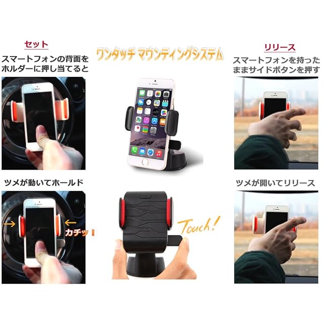真空式ゲル状吸盤でダッシュボードにもシッカリ固定、汚れた場合は水で洗い流せば吸着力が復活。デスクやキッチン、お風呂場など様々な場面でもご使用いただけます。