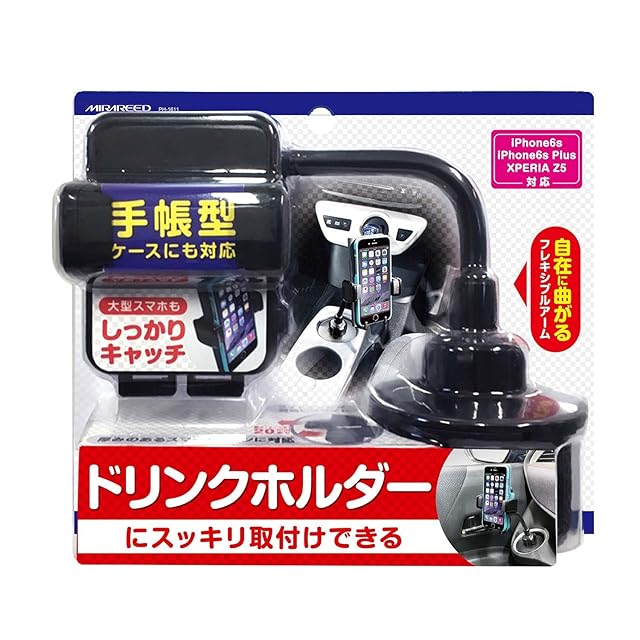 ミラリード スマートフォンホルダー 手帳型ケース対応 フレキシブルアーム ドリンク固定タイプ ブラック 汎用 PH-1611