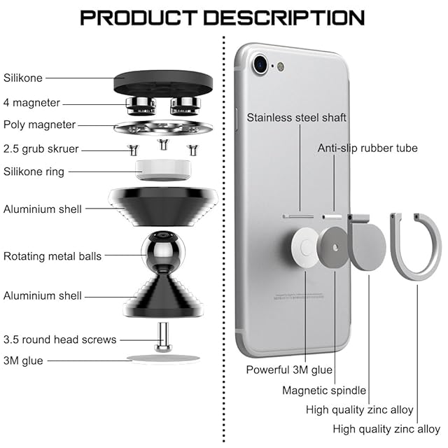 IHUIXINHE 車載ホルダー マグネット カーホルダー ホールドリング 360度回転 ダッシュボードに取り付け iPhone x 8 Plus 7 Plus 6 6S 5S SE Galaxy S7 Edge S8 に対応