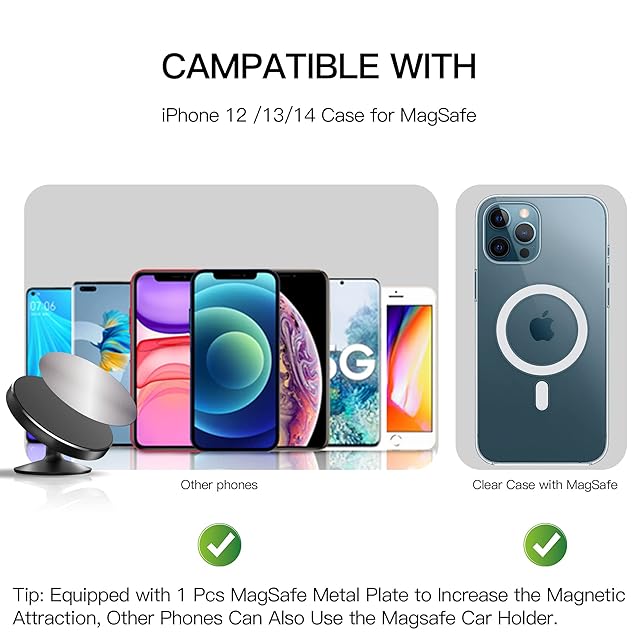 【iPhone Series 12/13/14用の設計】Apple iPhone Series 12/13/14とMagSafeケース用に別々に設計されています。 iPhone 13、12、Mini、Pro、Pro Maxに使えます。 金属板を貼らずに使えます。