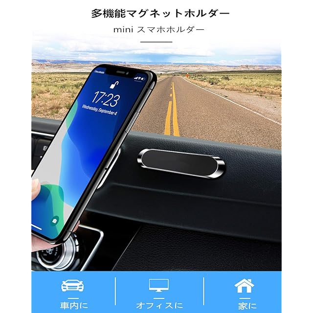 マグネットホルダー:強力マグネットでどこでもしっかり固定できるので快適なドライプをサポートします。磁力の力で、スマホに粘着する金属製プレートをしっかり固定する。スマホの脱着もとっても簡単です。