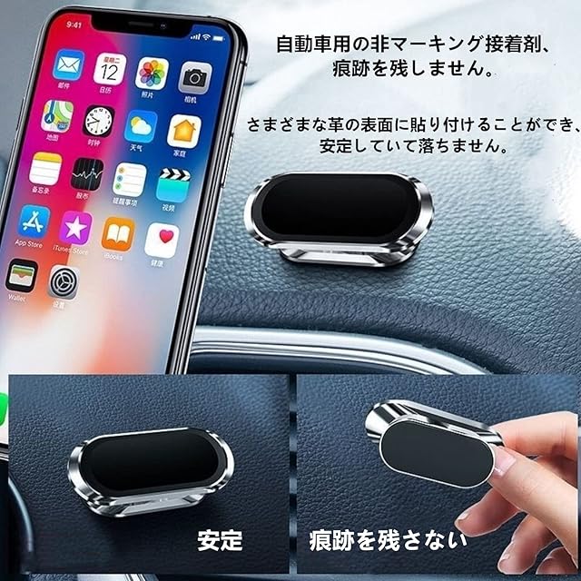 【優れた磁気と安定性】スマホホルダー 車 マグネット 吸盤には強力な磁石が8個内蔵されており、スマートフォンをしっかりと固定できます。運転中に道路がでこぼこしていても、スマートフォンの落下を心配する必要はありません。運転中、ブレーキをかけているとき、または道路が揺れているときにスマートフォンが落下することを心配する必要はありません。スマートフォンを置く部分とベース部分はシリコン素材、ピラーはアルミ合金製。スマホケースが>2mmの場合は、ケースの背面に磁化金属板を貼り付けることをお勧めします。