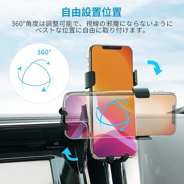 【360度回転&自由調節】アルファード30系後期 ホルダーは手元近くまで伸びるのは便利になります。ボールジョイント機能付いて、アームも角度調整可能、お好み視覚角度まで調整できます。360°角度は調整可能で、視線の邪魔にならないようにベストな位置に自由に取り付けます。車載ホルダーの真下に充電用の位置があります。車載ホルダーの固定部分はゴム製なので、スマホ本体を傷つけません 。アルファード 30 スマホ ホルダー