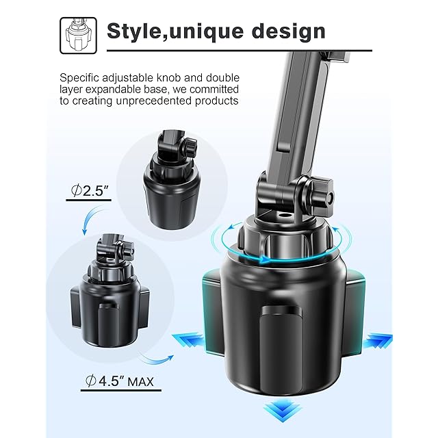 【拡張台座・取り付け簡単】この車載ホルダーには、拡張可能な台座が装備されており、回すことで最大直径10.2cmまでのほぼすべてのカップホルダーにフィットします。自動車、RV、SUV、トラック、タクシー、テスラ、ヨット、ゴルフカートだけでなく、ベビーカー、ランニングマシン、ソファのドリンクホルダーにも対応しています❗❗初心者でも工具を必要とせず、簡単に取り付けができ、ハンズフリーで運転を楽しむことができます。