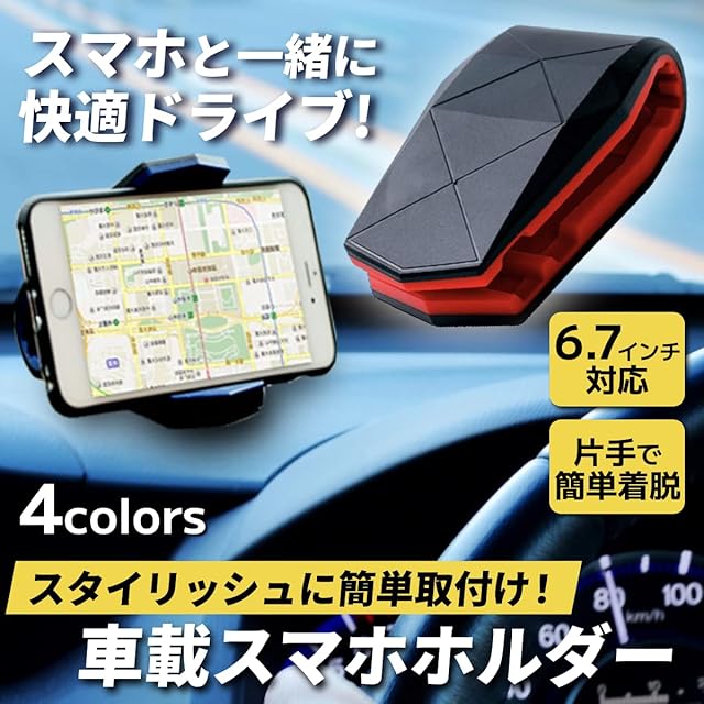 車載 ホルダー 車用 スマホホルダー 携帯ホルダー スマホスタンド 車載スマホホルダー iPhone Android 対応 車 携帯 (赤)