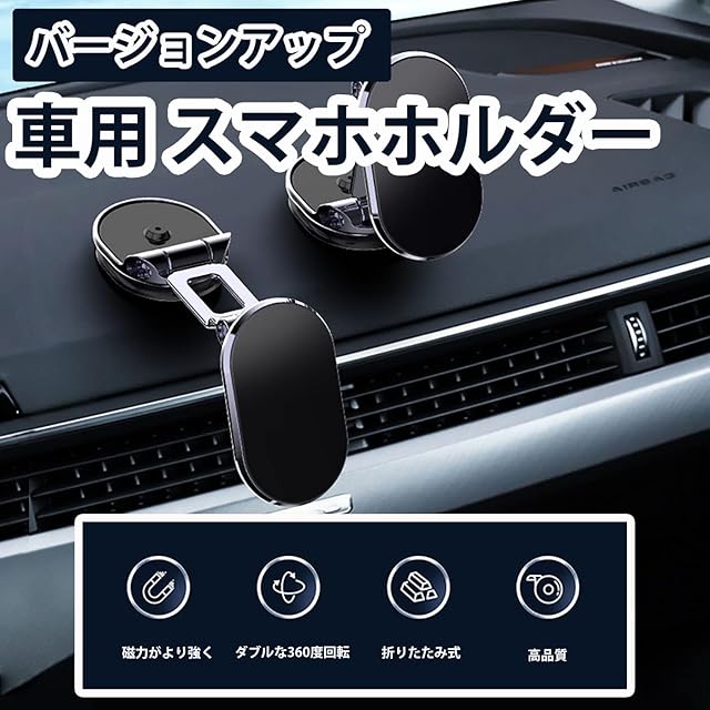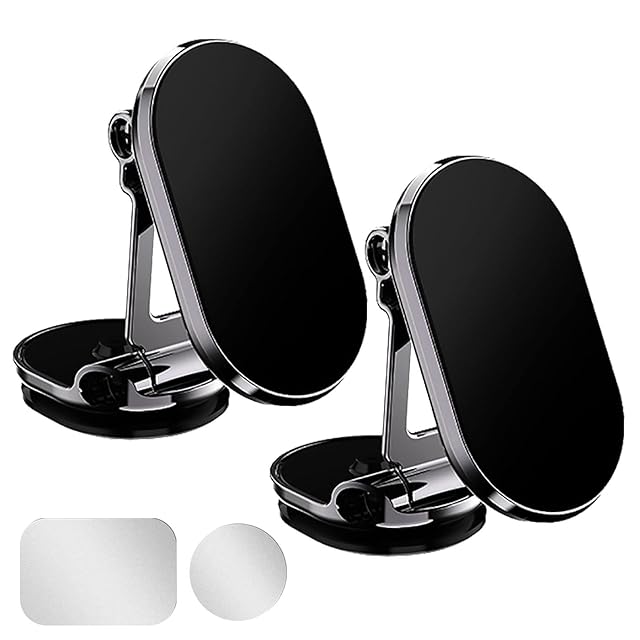 2個セット スマホホルダー 車 マグネット式 車載ホルダー 360度回転 折りたたみ 携帯ホルダー 片手操作 全機種対応 (Black)