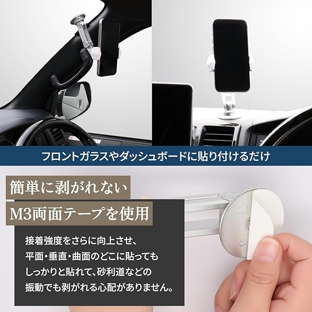 【超強力両面テープで抜群な安定性】従来のテープには「はがれやすい」「耐熱性に弱い」「跡が残りやすい」などのデメリットがありましたが、この製品は信頼のナノ3m粘着テープを採用!これらのデメリットをすべて解決しました。 接着強度をさらに向上させ、耐荷重を8kgにアップ! 平面、垂直、曲面のどこに貼っても粘着テープの粘着力が強く、高速道路や砂利道でも6.7インチのiPhone 14 Pro Maxが落ちることはありません。