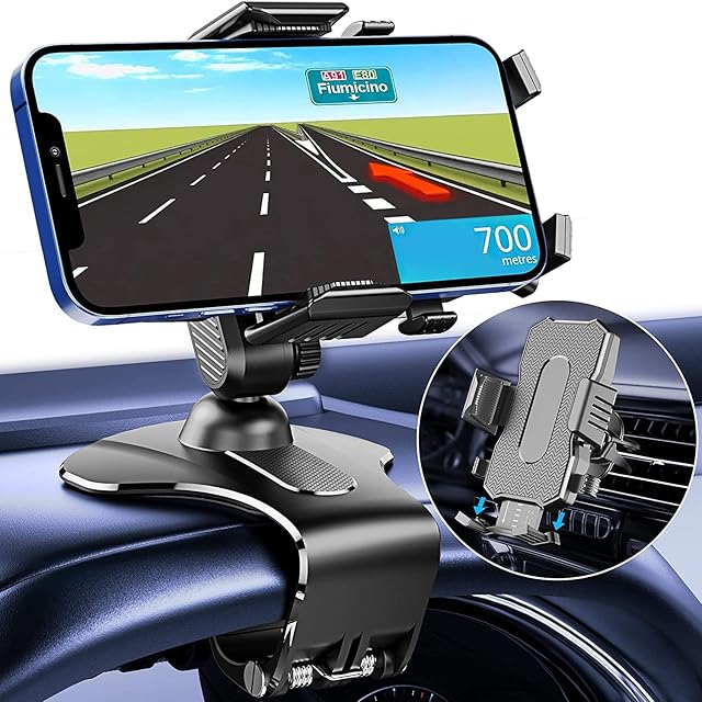 スマホホルダー 車 クリップ式 エアコン吹き出し口/ダッシュボード用 2in1 車用スマホスタンド ハイスピリット スマホホルダースマホ 固定 車用 360度回転 手帳型ケース対応 片手操作 カー用品 着脱簡単 バックミラー用 デスク対応可 縦横向き可 4-7インチ多機種対応 (03ホルダー)
