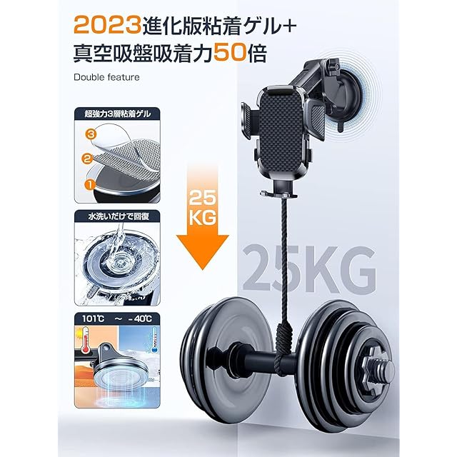 【安定性抜群】: 何千ものお客様からのフィードバックに基づいて、吸盤と内部構造を完全に更新しました。 吸引ゲルパッドが1層から3層にアップグレードされ、吸引力と運搬能力が大幅に向上しました[最大25kg]。 吸盤は、取り外した後に厄介な接着剤の跡を残しません。