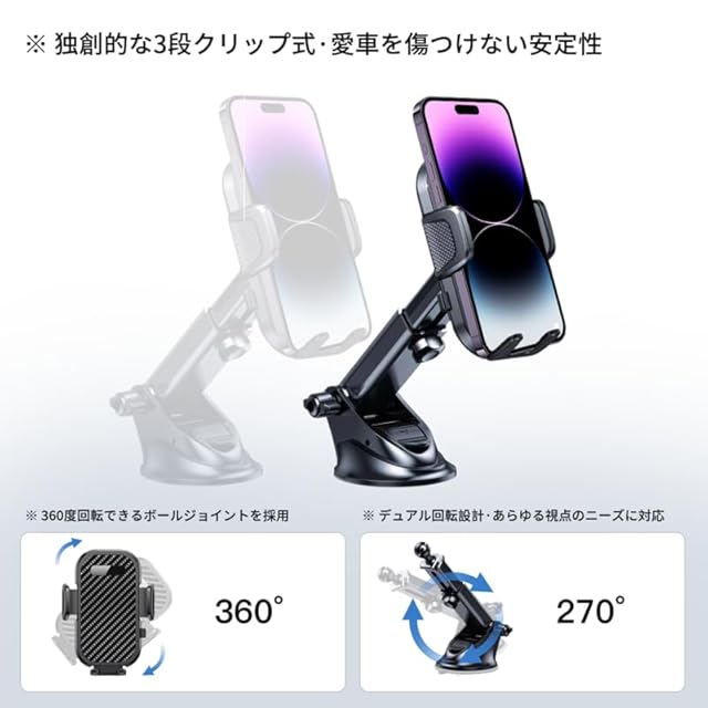 【2023新バージョンアップ】「吸盤式&送風口式両用で超便利」改良された車 スマホホルダーは吹き出し口式だけではなく、ゲル吸盤式ホルダーとしてダッシュボード、フロントガラスに装着してご使用頂けます。「取付簡単でプレゼントに最適」初心者でもすぐ使いこなせるように、車への取り付けがとても簡単です。すまほほるだーはワンタッチで使用できて操作性も抜群です。また、本製品は梱包に加え、細部まで拘ってデザインされ、全体的に高級感が溢れています。安全な運転環境を作り、大変実用性有るので、温かいプレゼントとしては喜ばせていただきます。